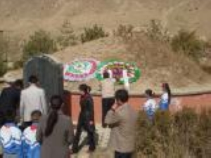 到达目的地后,我们向在这里牺牲的西路红军献上了花圈,然后深深地哀悼这些为了新中国抛头颅洒热血的壮士们。是他们用自己的生命筑成了一座座永垂不朽的丰碑,为了新中国献出了自己的一切。西路红军西征虽然失败了,但是他们以实际行动宣传了党和红军的抗日主张,播撒了革命的火种,他们在极其艰苦的条件下,用血肉之躯坚决地执行中央和中革军委的战略部署,为推动中国革命的发展和抗日民族统一战线的形成以及中国革命的最终胜利做出了不可磨灭的贡献。
