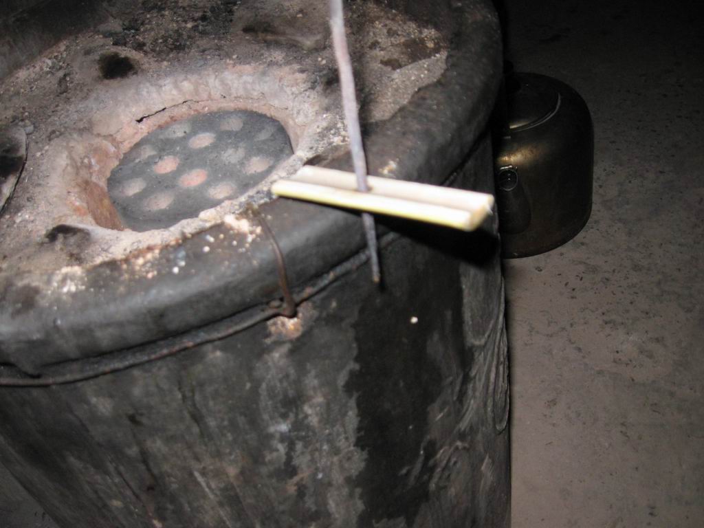 做完这些准备工作就要开始钻孔了,我到厨房里找来火钳,放进炉子里烧红,接着用烧红的钳尖对着竹子钻眼,钻眼是个细致活,慢慢钻,钻的眼要均匀,眼孔要光滑。