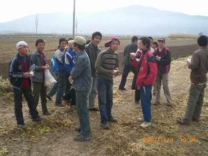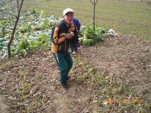 到了休息的时候,镇政府、学校、村委会还有附近的农户提来了水和馒头,发给了每一个同学。同学们有的吃着,有的唱着,看起来还蛮有诗意的。再瞧这几位男生,还去"偷"农田里的萝卜吃呢。