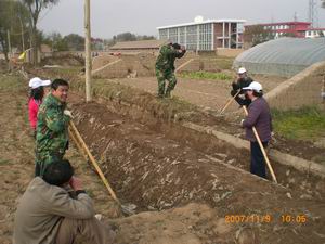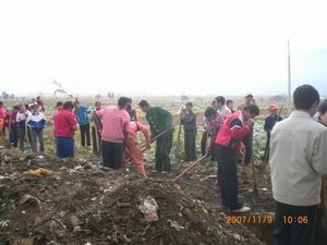再一次次的呼喊声中我们的工作用一上午就结束了,心情很愉快,回家的路上伴着铁锹互相的敲击声构成的美妙音符,我们胜利完工。
