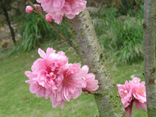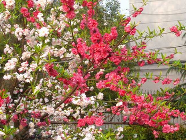 桃花有粉红的、深红的、浅紫的,在绿油油的树叶下映衬起来,显得鲜艳无比,那一朵朵的桃花就像一只只蝴蝶,扑打着翅膀,叫人神迷意醉。