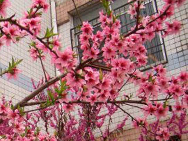 桃花开了,校园里有几棵桃花树,每天树上都会像下小雨那样的有花瓣落下来。桃花散发出来的清香,多么的沁人心脾。