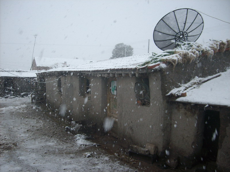 风很小,但是只有在没有风的时候才以看见,疏疏的雪片,差不多都停在这麻灰色的天空中,悬在那里,如同雪在月球上,失去了重量,迟迟疑疑地飘落下来······