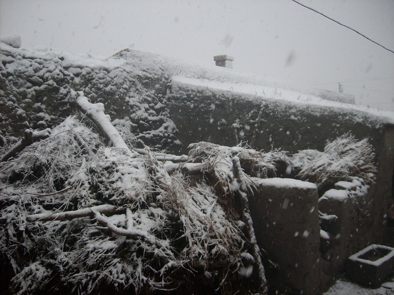 开始下雪的时候,还是小雪。地上一点白一点灰,像编织的丝绸一样。忽然,像皇上发怒似的,霎时变成了鹅毛大雪,它们落的很快,没等我看清楚就落了下来。现在地上像铺了一层白色的绒毛毯似的,真想躺上去舒舒服服的睡一觉。