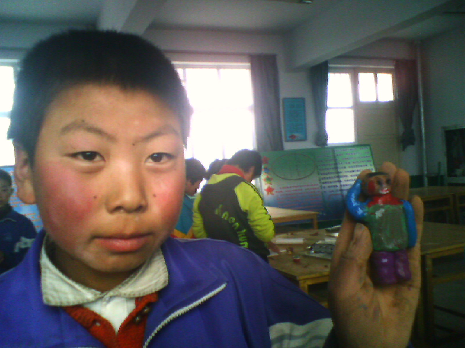 红、黄、蓝三原色可以相配成各种色彩:黄与蓝相配成绿色,红与黄相配成紫色......色调冷暖,色度差异,更是气象万千,多彩的生活源于我们心中的梦。我们是山里的孩子,我们贫穷。我们没有捏玩具的橡皮泥,没有染色的水彩,没有画画的画板和素描纸,没有的太多太多,可是我们的心中都有向往美好的梦,有创造美的梦,我们不会因为贫穷而沮丧而停止追求。