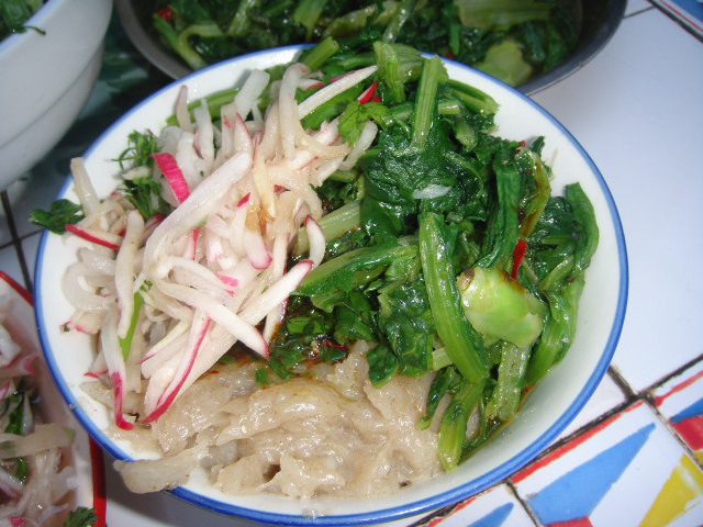 做好搅团的关键在于多搅,搅到面要相当光滑,这样吃起来特别顺口,放到嘴里就溜下去了。吃搅团的关键在于调料,调料也有讲究,辣椒、醋、芥末(最好是用红菜籽做的)、油炝菠菜油菜、炝油酸菜、韭辣等。吃搅团也挺讲究的,要用调料盖住搅团,用筷子挖着吃。