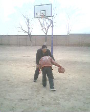 在一个天气晴朗的下午,望着窗外蔚蓝的天空中那一团团棉花似的白云,我的心情格外愉快。又见爸爸在家闲着,我就兴奋地说:"爸爸,我们去打篮球吧!"爸爸一听来了劲,得意地对我说:"行,不过输了别生气哦。"我不服输地说:"谁输谁赢还不一定呢。"