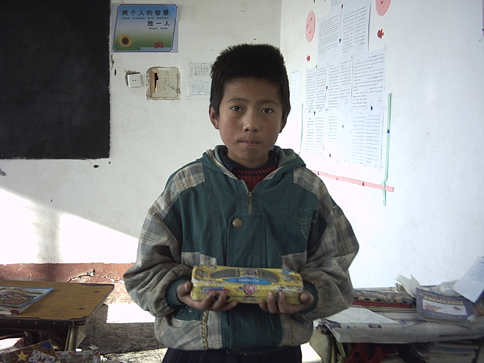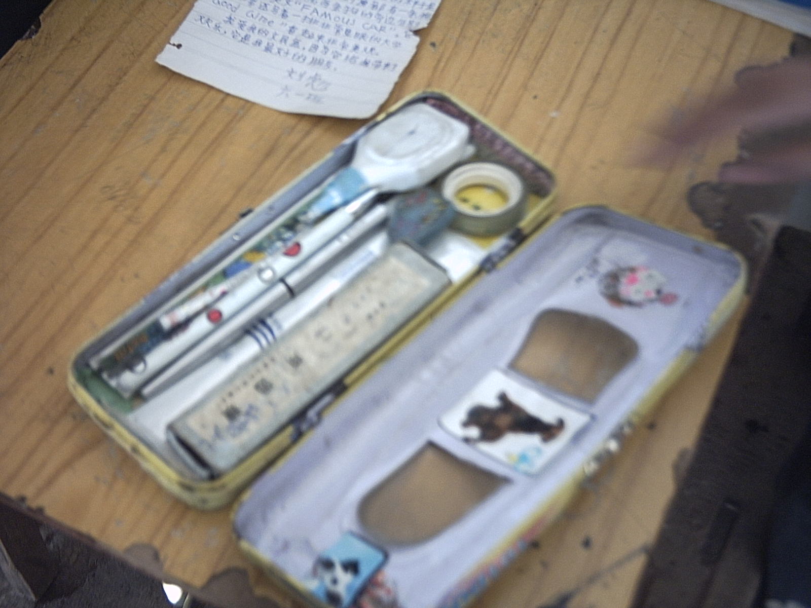 我有一个文具盒,它是我过生日的时候一个朋友送我的礼物。它黄色的底色,配着蓝色、红色和白色的图案。特别好看。
