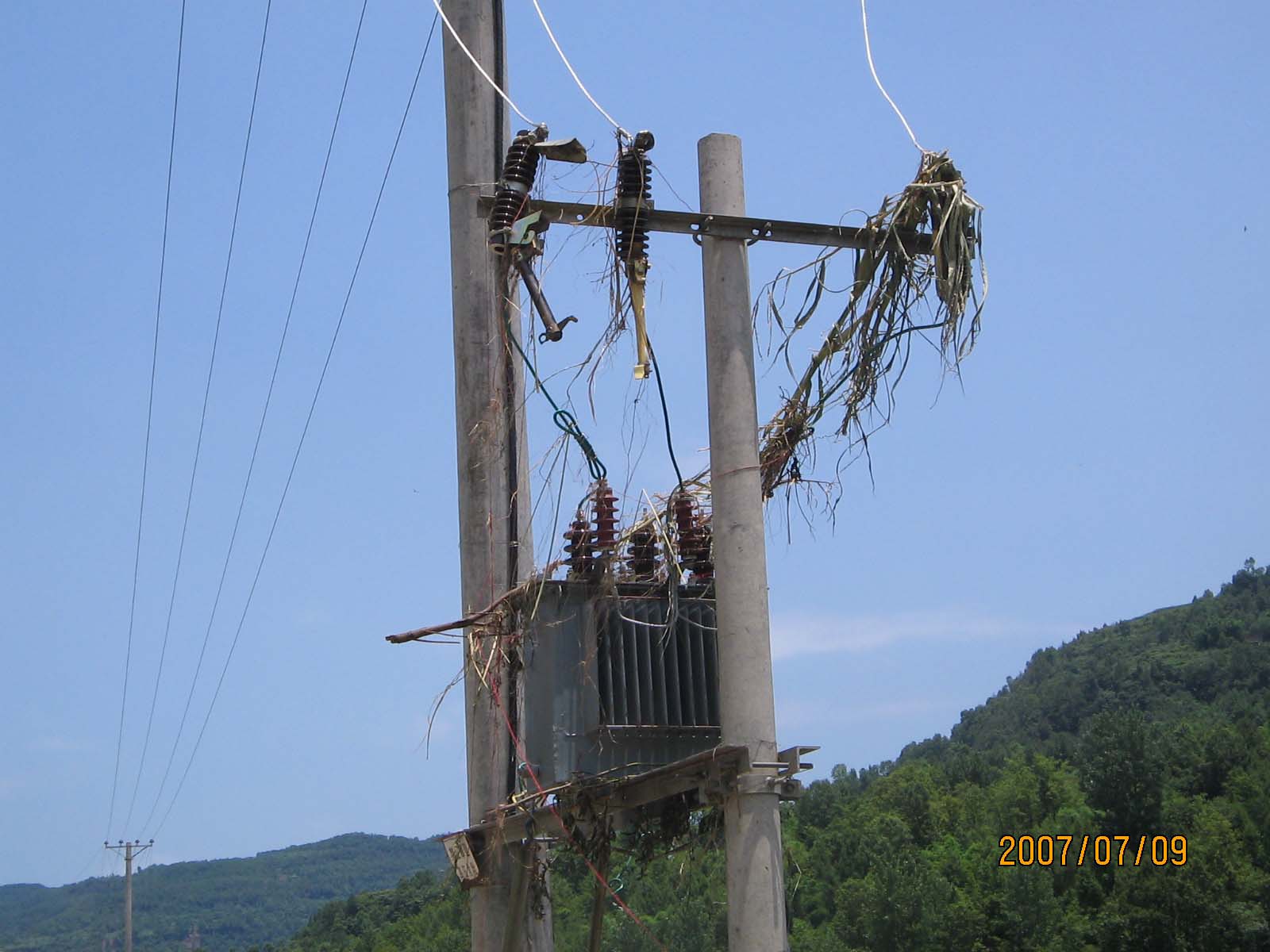今年的洪水非常大,你看那挂在半空中的变压器也被洪水冲坏了。今年的特大洪灾,给人们带来了很大的损失,有些村民无家可归,好在当地政府及时给他们发放了帐篷,给他们新建房屋,让他们安心的生活。