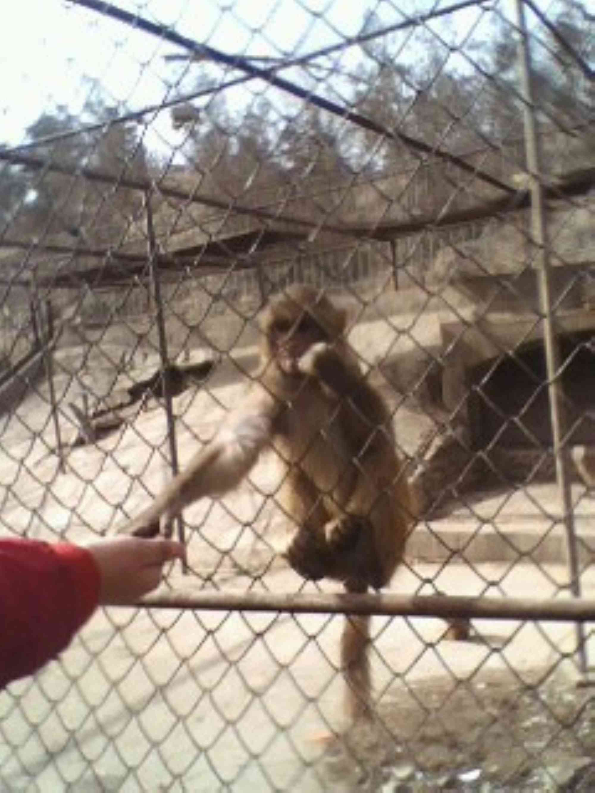 在这个死气沉沉的动物园里,唯一活跃的动物就是猴子了。它们上窜下跳,灵活地从这儿一下子跃到那儿,还无忧无虑的荡秋千。见有人来了,便伸出小手要东西吃。要到的,跑到一边吃;没要到的,急得抓耳挠腮;有的还抢其他猴子的食物。游客们乐开了怀。
