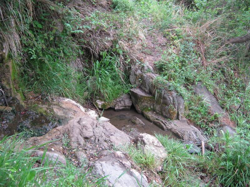 不久,我们来到了这个“危险地带”。这是一个山泉流动的地方,常年的冲击,使得山体露出了它的骨头,上面浮着绿绿的青苔 ,因此,走起来十分小心。这还不算太危险,更重要的是,这窄窄的石泉下,是百丈高的山崖,水流早已冲出了它的骨干,俯身望去,就像一条青色玉带直入而下。站在石台上面,向下望去,不觉使人望而生畏。不过,童年天真无知的我们全然不知这里的危险,几个孩子紧紧地挤在一起,坐在两旁的石头上,脱下鞋子,将嫩嫩的脚丫伸进这清凉的水中,顿时,一股清凉之感从脚底漫向全身,炎热之气一下被压了下去,舒服极了。不时,溅起几滴水花,滴在身上。水流声早已被我们的欢声笑语所盖,传向远方--------