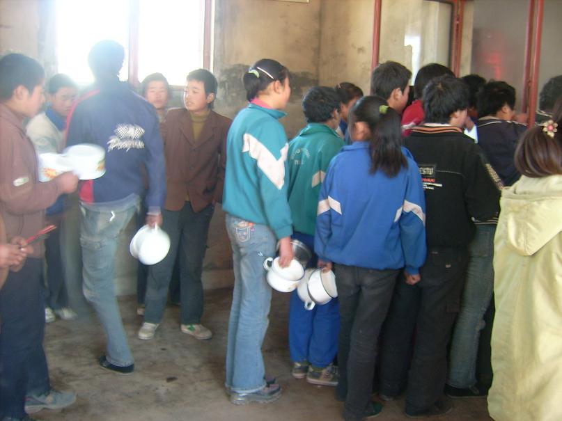 每天到了中午和下午的打饭时间,你会看见同学们像一窝蜂一样拥入食堂。他们都是为了早一点打上饭。在食堂里你还会看见大家排成长长的两队,其中的一队是打面饭的,另一队是打米饭,由于大家多半喜欢吃面饭,所以在打面的这条队伍明显长一些。到底为什么学校里的长面如此受大家的欢迎呢?我们去厨房看一看厨师们的工作情况一切就明白了。