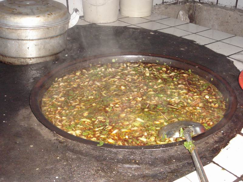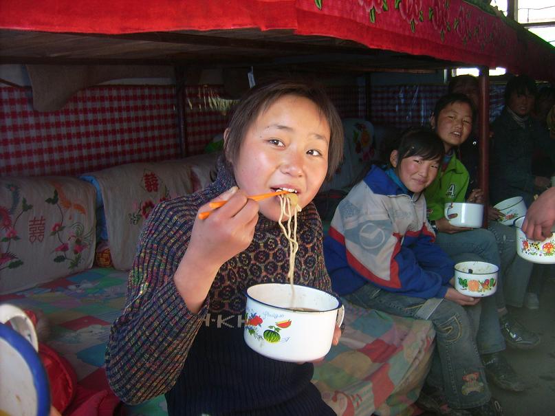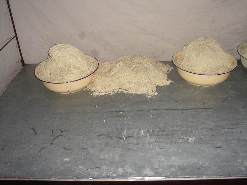 光是把面压好还不行,还需要有臊子,由于条件毕竟有限,所以臊子的菜料也很简单主要有:洋芋条、胡萝卜、白菜还外加一点肥肉。不过虽然菜是简单了点,但是大师傅却能制做出别具一格的口味,真所谓"简菜可以特做",只要有好的技术还害怕做不出更胜一筹的味道 吗?"