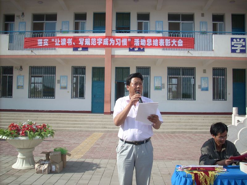 让校园充满书香是我校一项长期的校园文化建设活动,我校每个月都举行一次检查、总结、奖励活动。 今天是6月24日星期五,我们刚刚进行了本月的月考,学校组织全校师生集会,开展"落实让读书、写规范字成为习惯活动总结表彰"大会,这次活动由马校长负责主持。