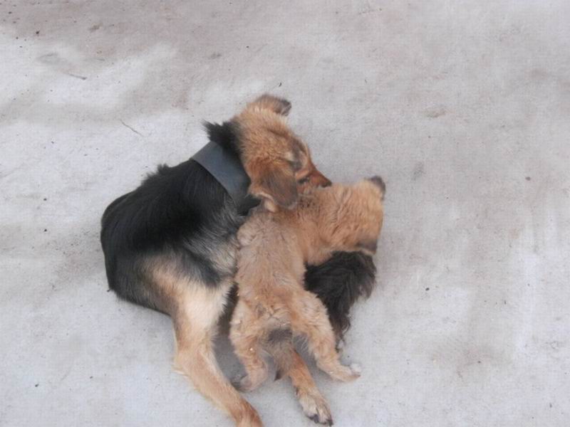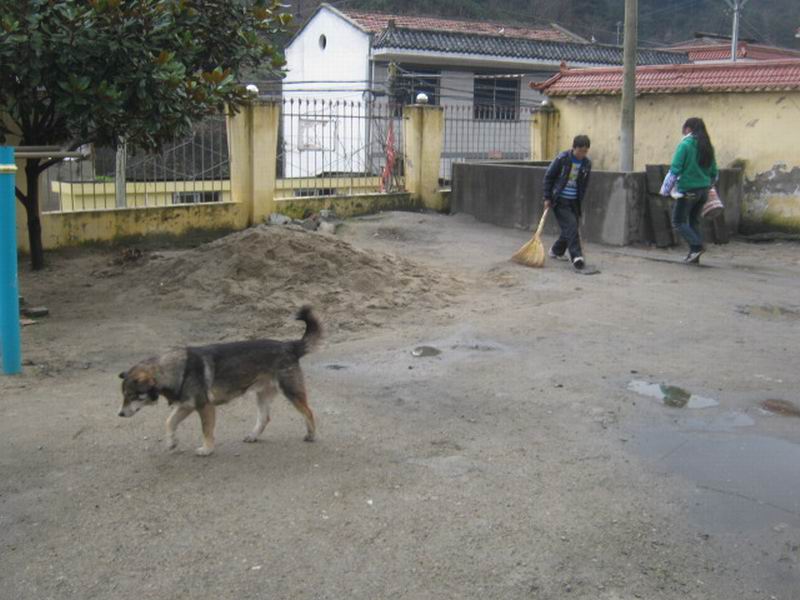 这两条狗在学校里极其可怜,经常被高年级同学的欺负。但也有好心人,常常为他们一些食物,但是,因为它们经常受欺负,所以不管是谁它们都离得远远的,直到人走开后,它们才去吃食物。