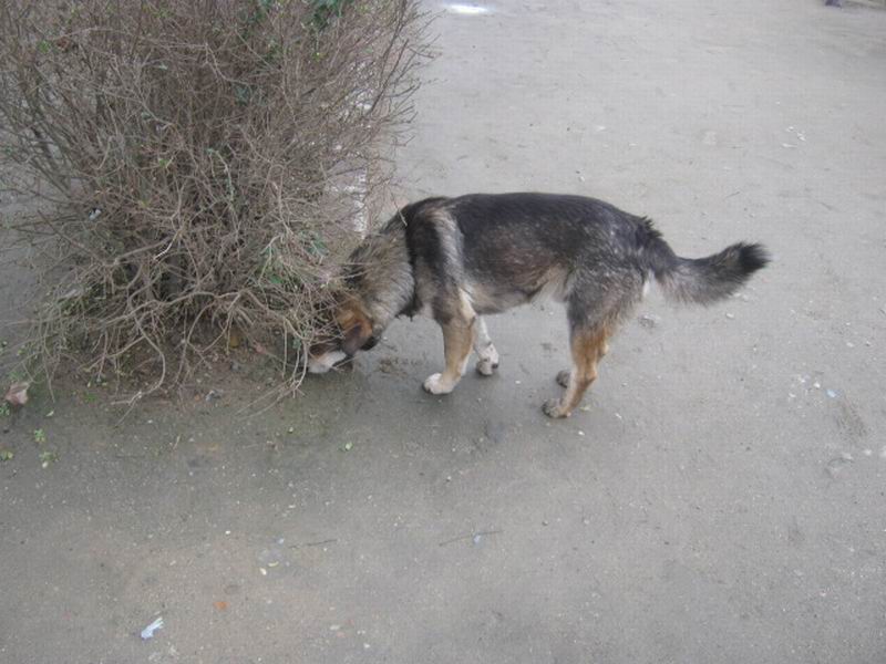 这条小狗现在正在找食物,愿它饱餐一顿,不再受人欺负。