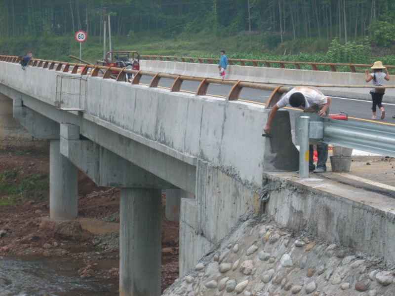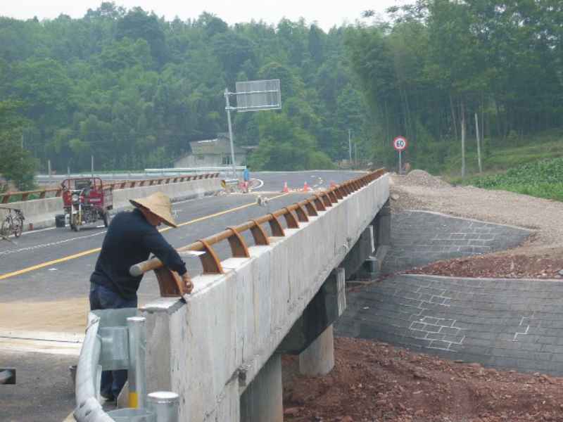 偶然发现前方路两旁高了些,开始时我还以为是连日暴晒的结果,但继续走一小段,便望见了去年开始修建的那座桥,远远能看出从桥上出来的路面颜色要差许多,走近才知道那路两旁凸出来的部分是为修沥清路而做的。