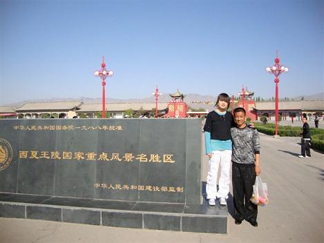 我们又去了西夏王陵,那是国家重点名胜风景区,在那里人更多,我也想不明白,这么多的人都是从哪里来的,一想就头疼,里面停的全部是车,一眼望去,可能让人眼花了,因为有各种各样的名车,可惜咱家没有,在西夏王陵风景区里,我们只是浪了以下部分,因为很大很大,转不过来,在国家重点标志前面,姐姐和舅舅照了一张,看上去也不是太清晰,于是我们住在了舅舅的家里,第二天就上来了。