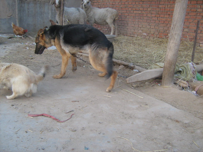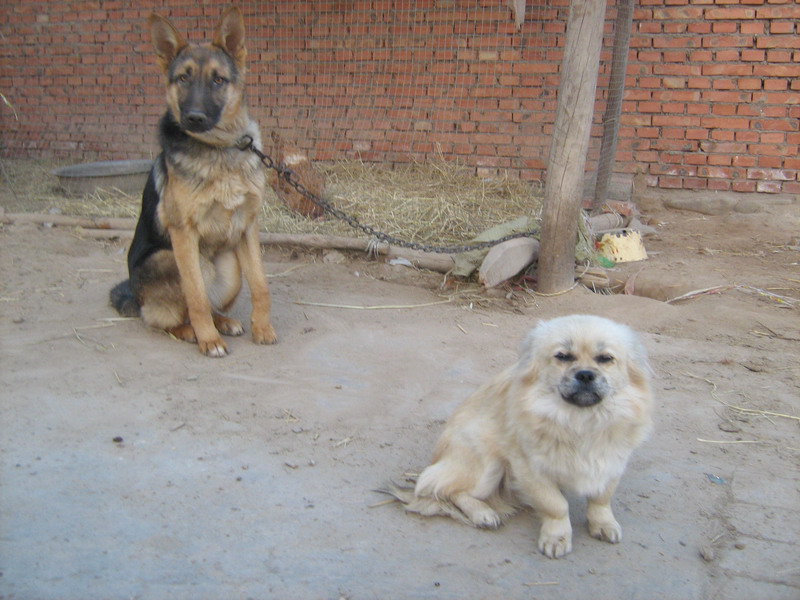 这是我家的两只狗,大的叫“奔奔”,是花三百多块钱从一个养殖户那里买来的。小的叫“点点”,是亲戚送的。有趣的是它们的胆量却与体格完全相反——大的胆子小,而小的胆子很大。