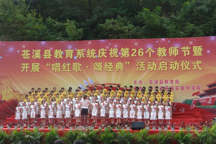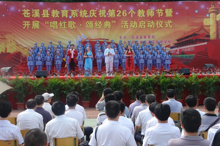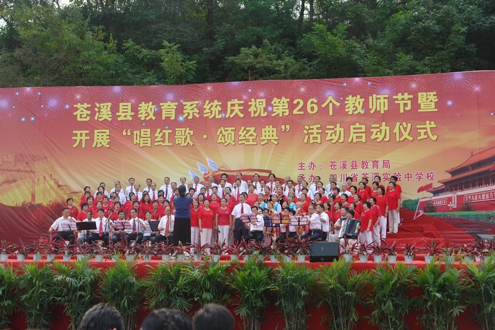 这是我们学校邀请的老一辈教师,他们在我们学校进行演艺了红歌精神。