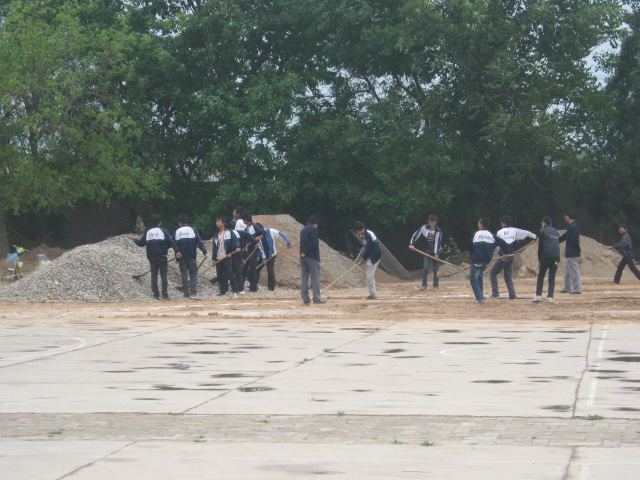 最后还需要在上面浇一次水,这样我们在上面活动的时候,就不至于有那么多的尘土了,我们足足干了两个小时,不过,看着平整后的操场,我们每个人的心里都很有成就感。