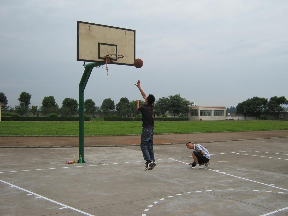 同学们都喜欢打篮球,人多的时候就打比赛,再多的时候,就分组轮流比赛;人少的时候就练运球,练投篮。总之,球场上从不缺少弹跳和飞跃,因为篮球带给了大家快乐。