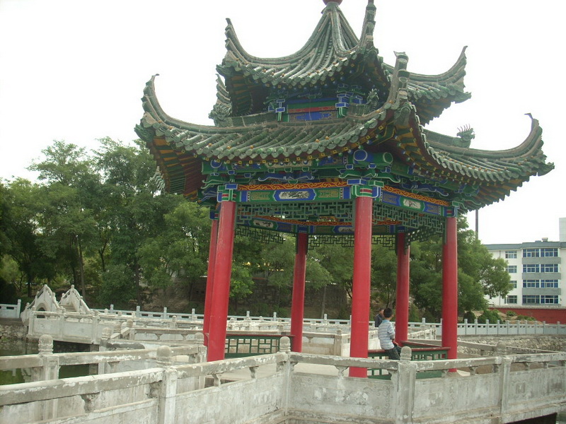 来到观音菩萨像的平台上,向北看去,有一坐放生水池,在水池的中央,还建有通道和凉亭,游人可以从凉亭穿过正个放生水池,一边走一边可以欣赏水中的鱼儿在水池中自由地游动,好多人都留足观赏。围绕玉皇阁周围种了许多树,到了夏天,我们可以看到很多人的老年人都来到这里纳凉,成为一个供人们休闲、旅游、上香祈求神灵保佑的好地方。