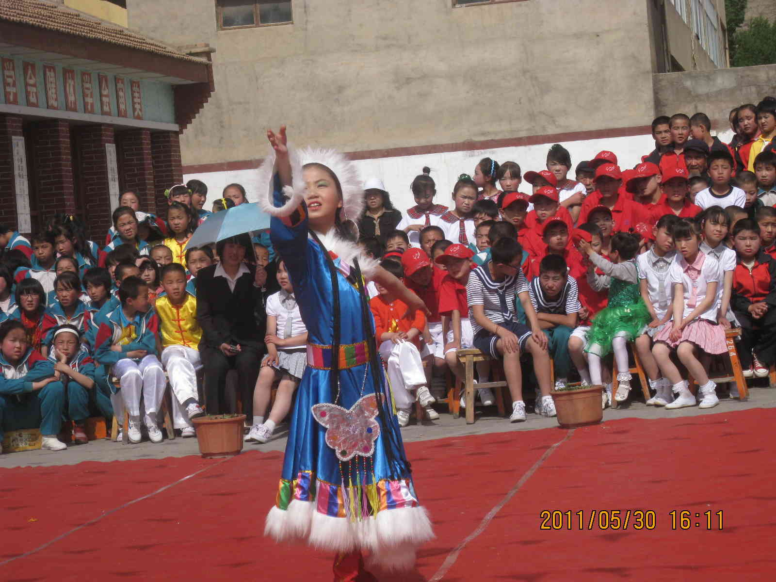 看!"藏姑娘"的舞来了。这是一支独舞,那美丽迷人的衣服,衬托她的热情与开朗!那柔软的肢体,让观众们刮目相看。在那奇特的音乐中翩翩起舞,真是让人将美丽尽收眼底。她可以做出许多别人做不出来的动作,在校园中犹如一支奇葩。