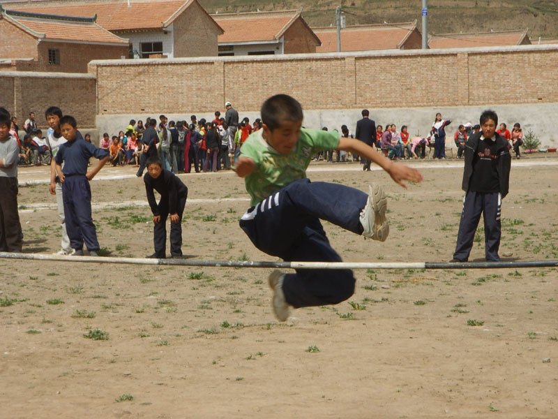 大家看啊!跳高的赛场上一个小不点正在学刘翔跨栏呢?人小,心劲却挺大,"跨起栏"来可真不犹豫,好像所有的对手都不值一提,是小猫小狗似的,他就是我们班的篮球精英——马永宏。