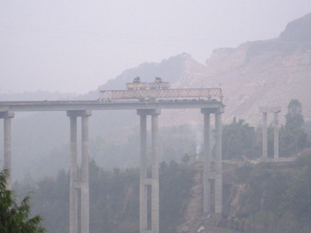 这就是大桥的桥面,上面这些东西我都不认识。由于桥还没有修好,为了安全,施工的工人不准上桥,我只能站在桥头上看一看。