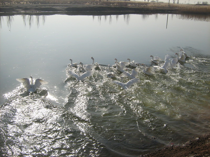 鹅戏水的样子更为可爱。每当它一下到水里的时候,就表现得特别高兴。它们梳理羽毛的样子很特别。它们用脖子搭在身上使劲滑动脖子,有时还会用嘴在羽毛里啄,不禁让人联想到“红掌拨清波”这句古诗来。当它们格外高兴的时候,还会展开翅膀想要飞起来。