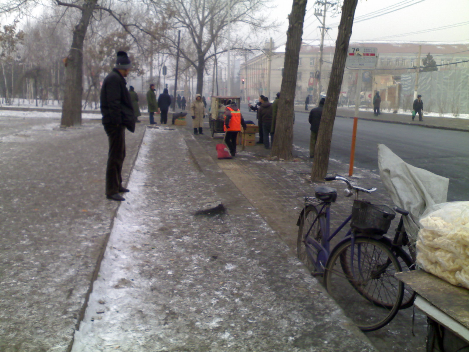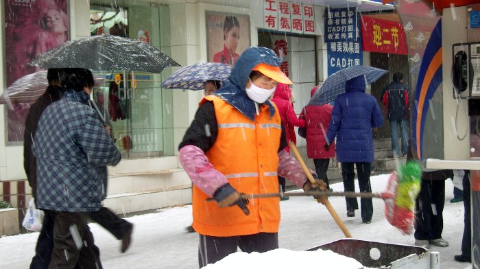 我看着满天大雪飞舞着,看着一帮清洁工忙碌着。