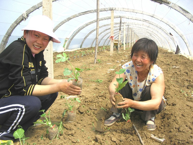 在奶奶的叮咛声中,我慢慢的用铲子在地膜上插两下,把两铲子之间的地膜用手拨断,再把铲子在已挖好的地方摇几下,然后放上辣椒苗用手压定,浇上水,一株辣椒苗就站直了。载好第一株,再栽第二株,第三株……奶奶不时的夸我一两句.我听着奶奶的表扬越有信心,越栽越快虽然累的满头大汗,但心里却很高兴。,