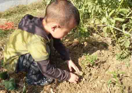 星期天,我们全家人去地里栽辣椒。