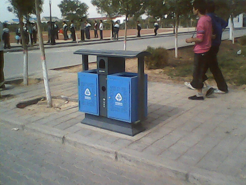 它们是今年才加入校园大家庭的,它们通体蓝色加上黑色的边框和身上独有的可回收、不可回收以及灭烟处的标志,这些可爱的身影开始融入校园的大家庭,开始融入我们的高中生活中。