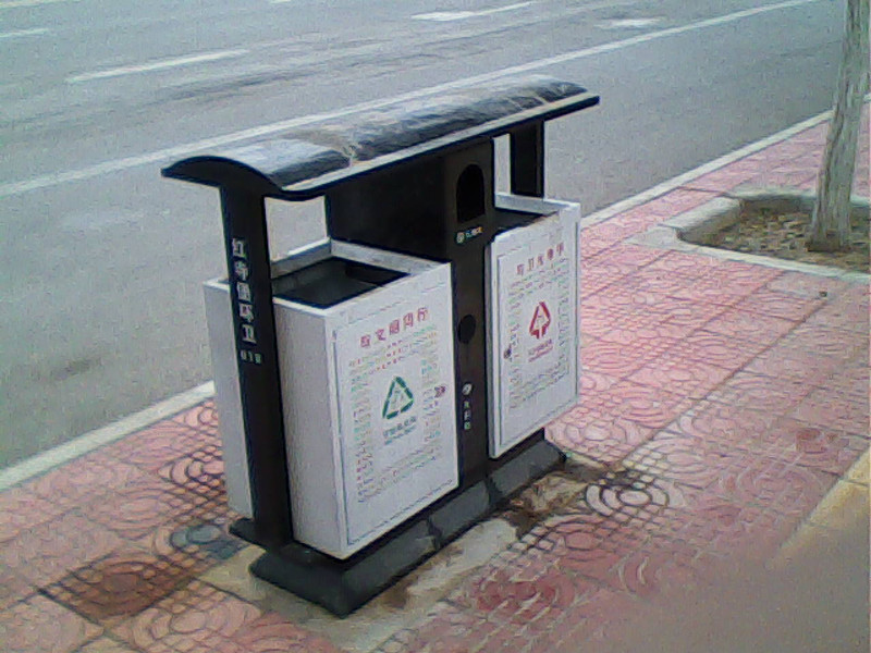 而城镇的大街上也安装了这种新型垃圾箱,不过大街上的它们的颜色也变了,变成灰色加上黑色的边框,虽然它的颜色变了,但它实现的功能可是一点也不打折扣。