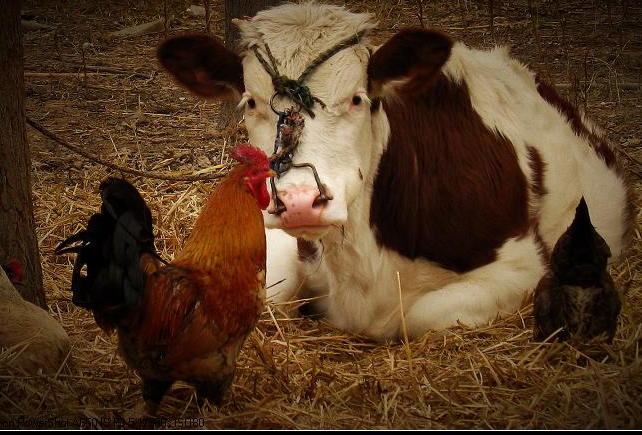 有一天,我撒食给鸡吃。花公鸡一边吃一边窥视,真像一个侦查员在秘密暗访调查,突然间一只来"抢食"的"强盗"向鸡群跑来。俗话说:一山不容二虎。花公鸡挺身而出,忽视着强盗,似乎在说:"想吃,呸!没门! "顿时,强盗也敌视着花公鸡,好像威胁说;"没有什么人可阻止我"