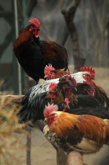 一瞬间它们各自摆出了搏斗的架势,双方时儿相互搏斗,时而逐对方的冠子,时儿后退几步,时而进攻。