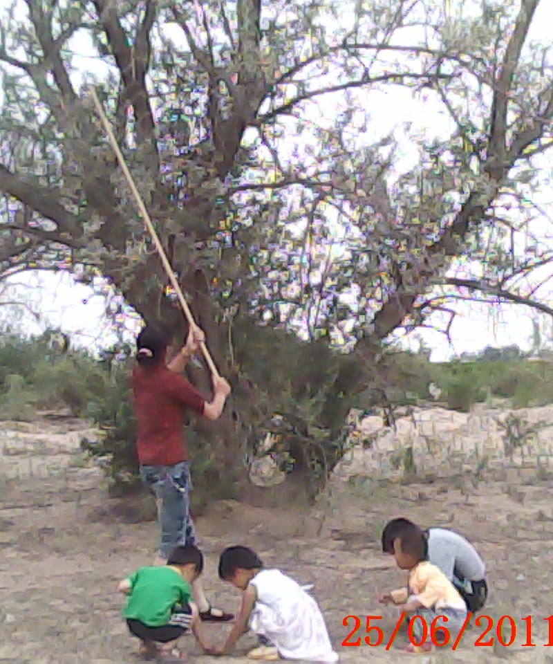 每到秋天,沙枣成熟的的时候,便是我们最开心的时候。记得以前常常和伙伴一起去打沙枣,一个人用鞭子敲打着那甜甜的沙枣,别的人在树底下捡沙枣,看到那沙枣一个个像调皮的孩子那样跳落下来,好高兴……