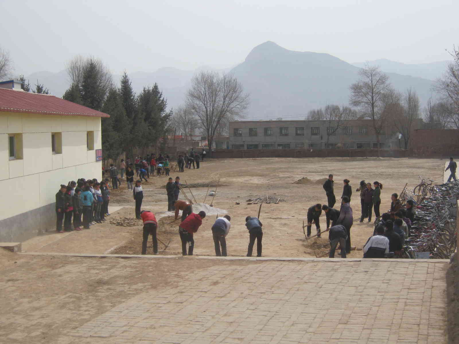 我们的任务区域是操场东面的地方,我们捡完了里面的石头子和垃圾,又在旁边的空地上开辟了一个花园。