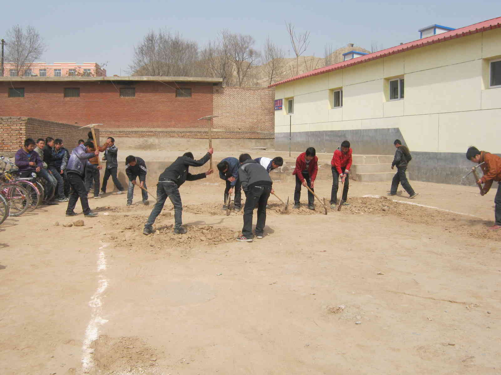 我们下午的任务就是清理校园里面的垃圾,并且把校园里面该平整的地方平整一下子。