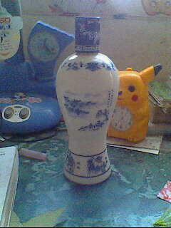 我不仅收藏这些小东西,而且有一个漂亮的酒瓶,那是爸爸送给我的。它上面用蓝色的颜料绘制着各种图案和花纹,它的底色是白色,形状像个花瓶。瓶子上还写着一句诗:"借问酒家何处有,牧童遥指杏花村"。这个瓶子是我的收藏中体形最大,也是我最喜欢的一个。