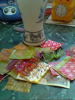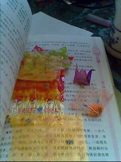 除了树叶和花瓣外,糖纸也是书中的客人。吃完糖后,把糖纸捋平,夹在书中,然后把他们折成千纸鹤、蝴蝶等。