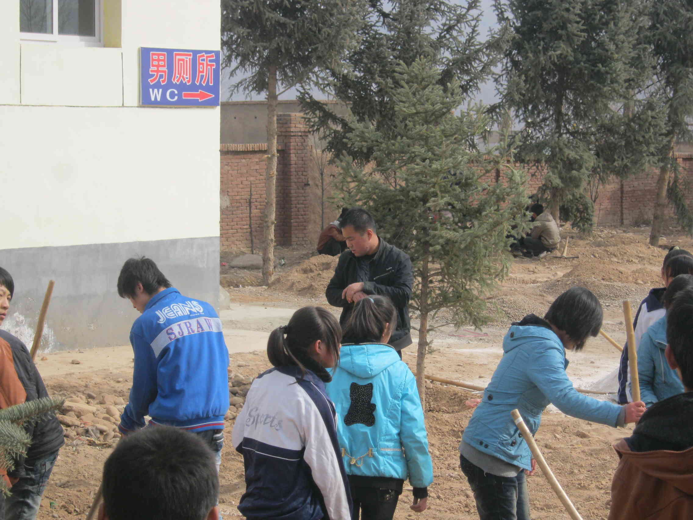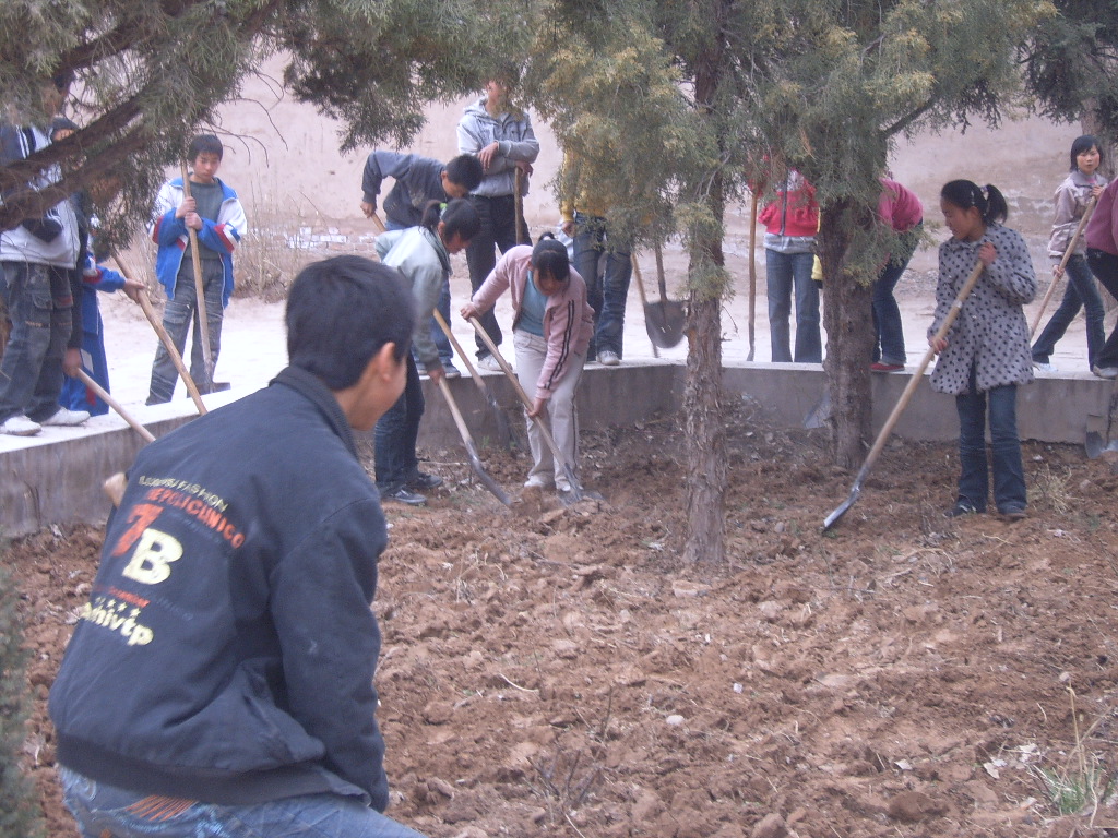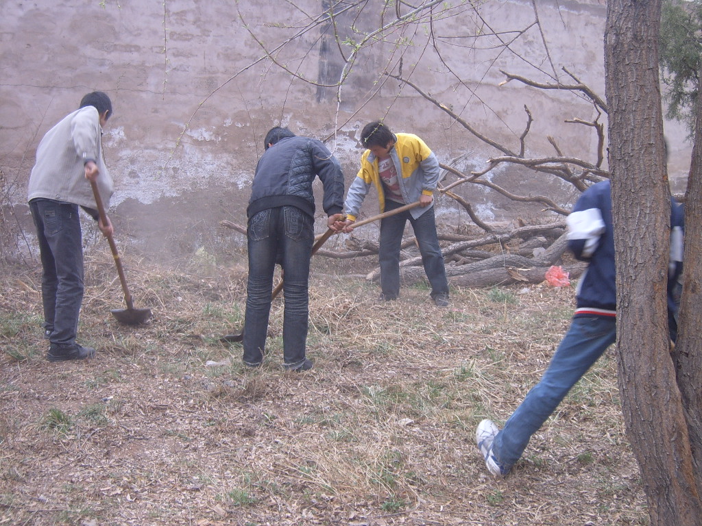 校园里还有很多的石头和废弃的木条,我们到处捡这些东西,让后用架子车把这些东西拉走。
