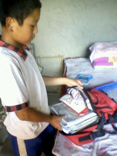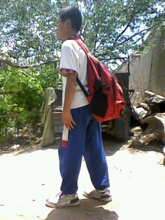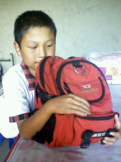 这个书包是红色的,他的容量很大,我每次都把许多课本塞给它,但它每次都笑着对我说:"没关系,这算什么。"