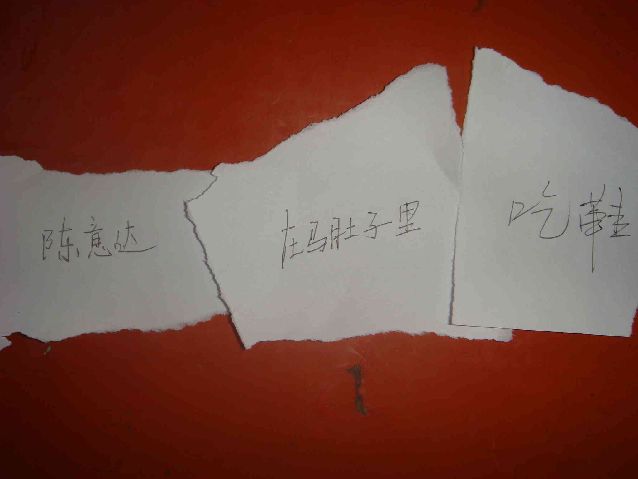 开始念了:"陈意达在马肚子里吃鞋"。刚念完,同学们边哄堂大笑起来,鞋子怎么能吃呢?而且在马肚子里吃鞋子。又开始念:"杨雷在月球上吃饭"。哈哈哈------同学们又是捧腹大笑。接着老师又叫了三位同学站起来读自己手中的纸条:"施欢欢在树上捉老鼠。同学们听了笑的眼泪都流出来了"