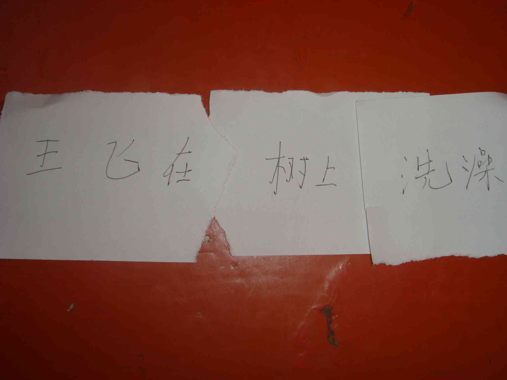 "王飞"!啊!该我念了。我心里砰砰直跳,"王飞在"树上洗澡哈哈哈------同学们一边看着我一边笑,我也不知道害羞地跟着大家笑了起来。