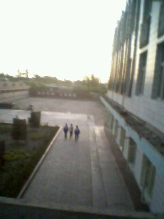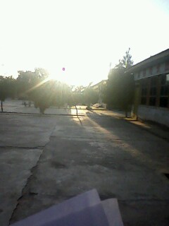 再看看学校的西方吧,此时田野和连绵起伏的群山更显得娇美无比。与天际相连的群山在烟幕中时隐时现。夕阳透过层层薄纱,露出孩子般的脸,寻找着自己的摇篮不愿意离开那西方的学校。