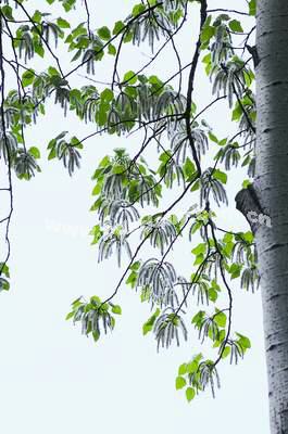 在我的家乡,最能显示春天的信息的就要算白杨树上的白杨胡了。你瞧,别的树木还没有多大的变化,而那一棵棵高大挺拔的白杨树上的"白杨胡",不知什么时候悄悄地露出了头,而且一天天变得又粗又长。毛茸茸、蓬松松的"白杨胡"在春风吹拂下摇摇晃晃,飘飘悠悠,仿佛在跟人们说:"春天到了,天气要变暖了。"