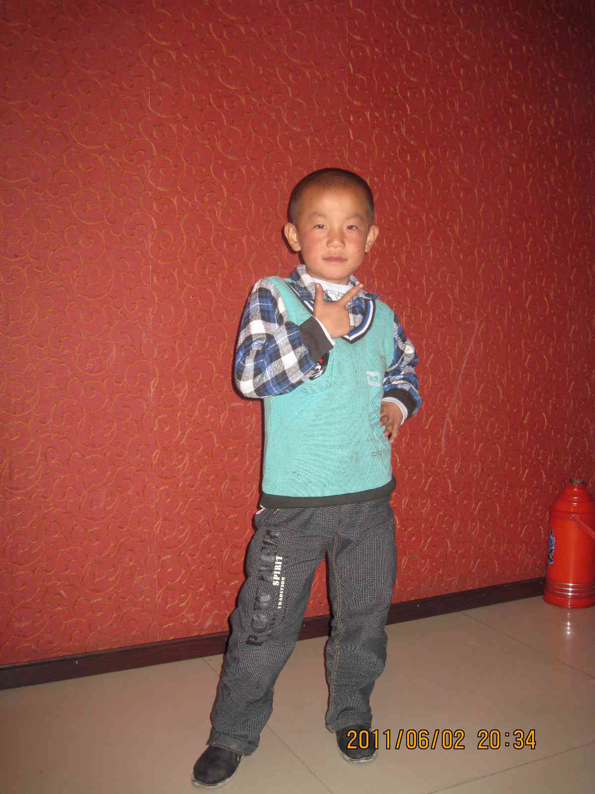 提起他,给人第一影响就是一个字:酷!瞧,他短黑发上还喷了彩喷,单眼皮大眼睛,小小嘴一张。他总爱穿衬衫一类的衣服,配一条牛仔裤,他认为这样有"绅士风度"。他总是笑着面对生活。可称得上是活宝了。
